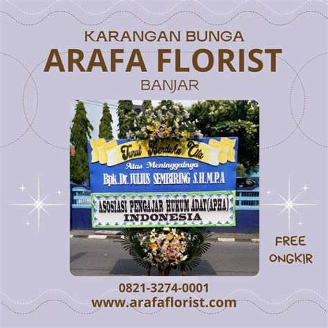 Karangan Bunga Banjar. Pesan dan Kirim Karangan Bunga Papan Terdekat dengan Lokasi Anda. Florist Standing Papan Bunga untuk ucapan selamat sukses atas pernikahan, graduation, HUT, pelantikan, Wisuda, HUT, Opening, Menikah, Ulang Tahun (Happy Birthday) dan juga Karangan Bunga Duka Cita Toko Bunga Terdekat Alamat Florist about Karangan Bunga Banjar Terdekat. Kirim Bunga papan 24 jam online.